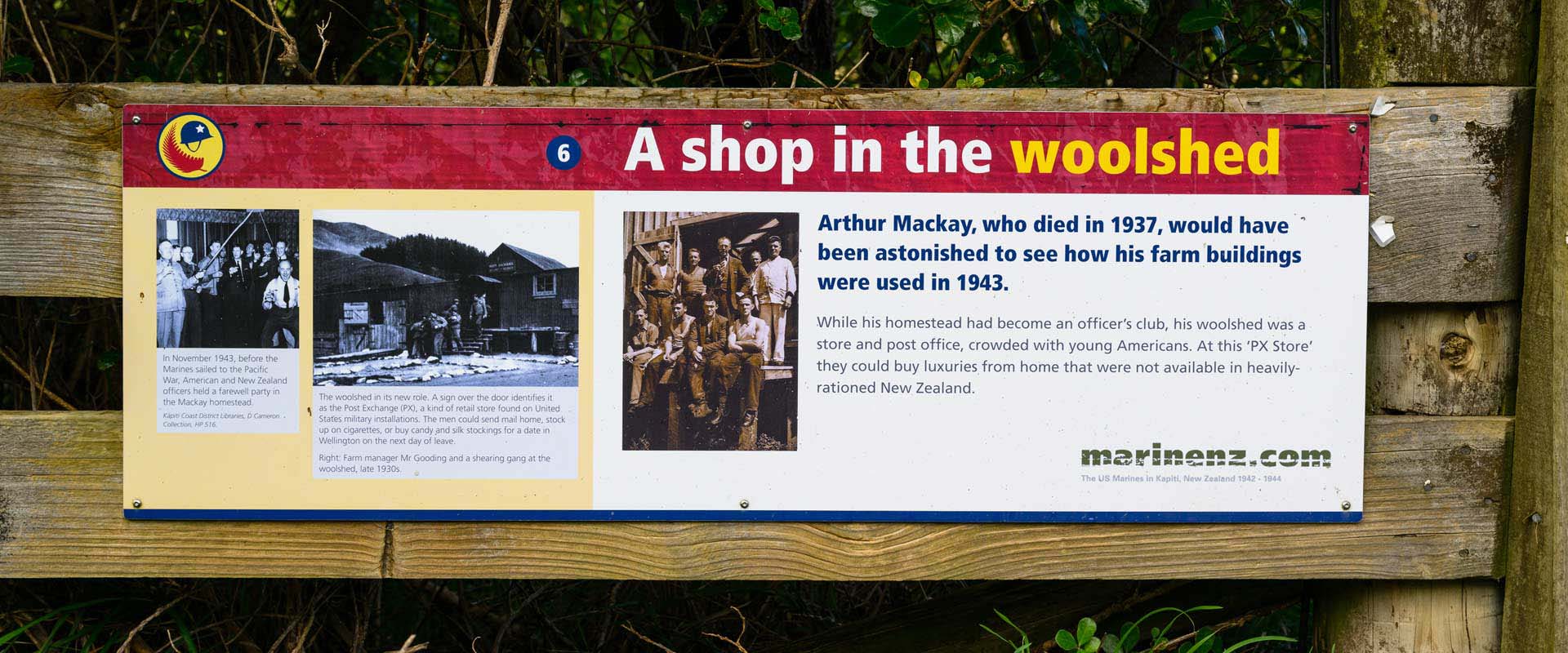 Camp Mackay, named after the Mackay family, the first European owners of the land, was the first of the Paekākāriki Camps to be completed when the Marines arrived in Wellington on June 14,1942.