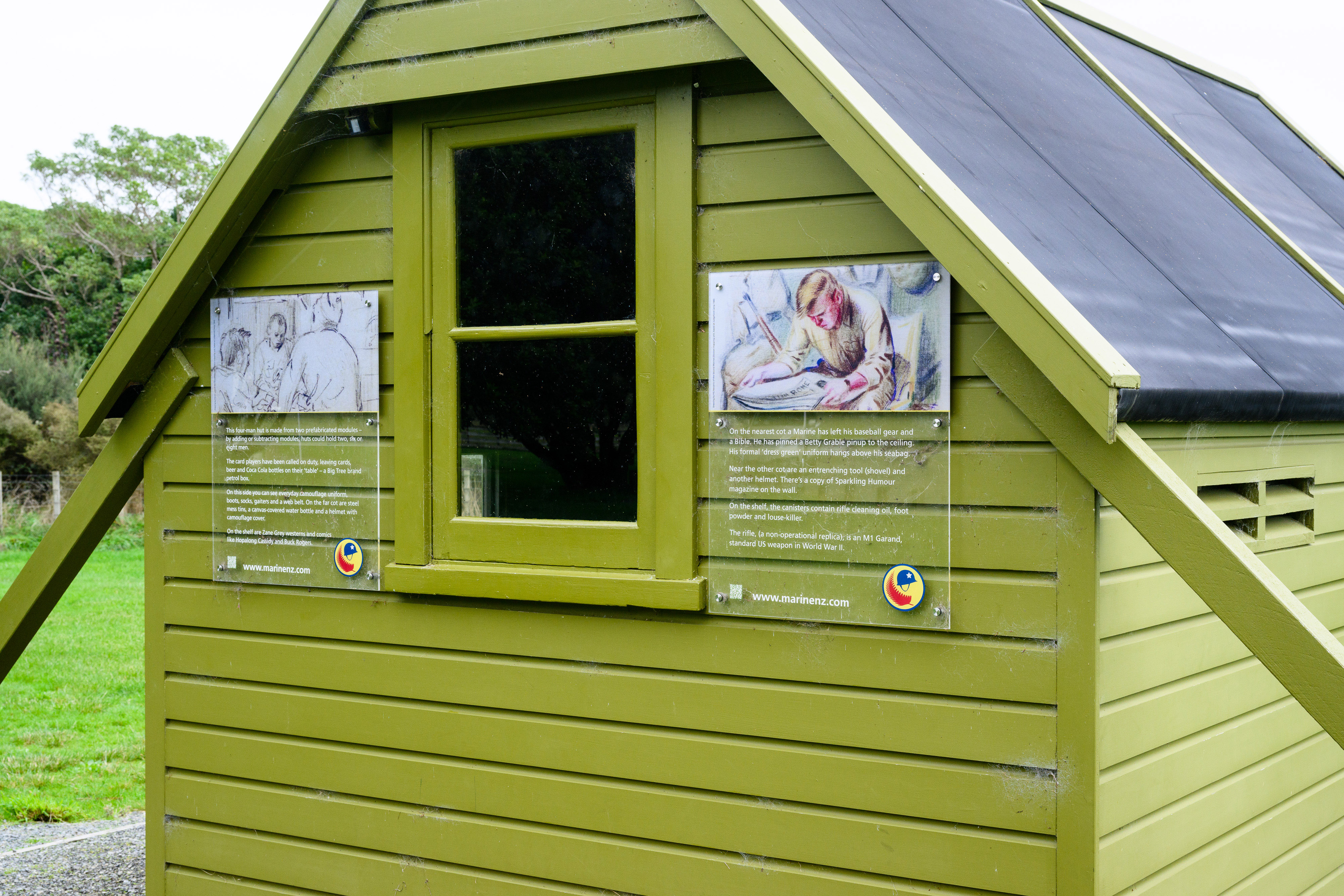 The interior fit-out of the building hut has been led by Steve La Hood from Wellington-based design company Story Inc. Using a range of WWII Marines props the company has converted it into a ‘story hub’ so people can look through the windows and see a diorama of how the Marines lived during World War II.