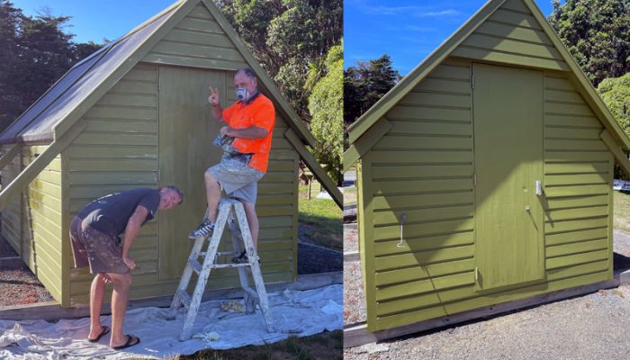 The restored Marine Hut in Queen Elizabeth Park has recently been given further care, with exterior repainting generously undertaken by Mark Hunt and Fraser Richardson, two professional painters who volunteered their time and expertise.