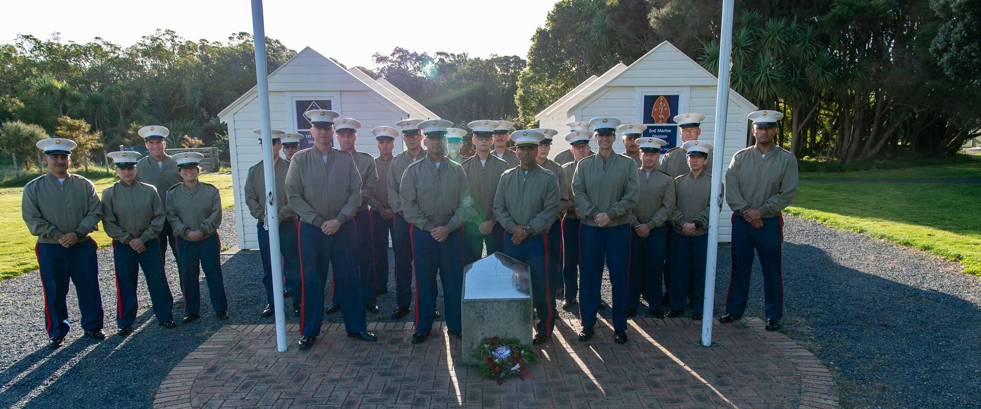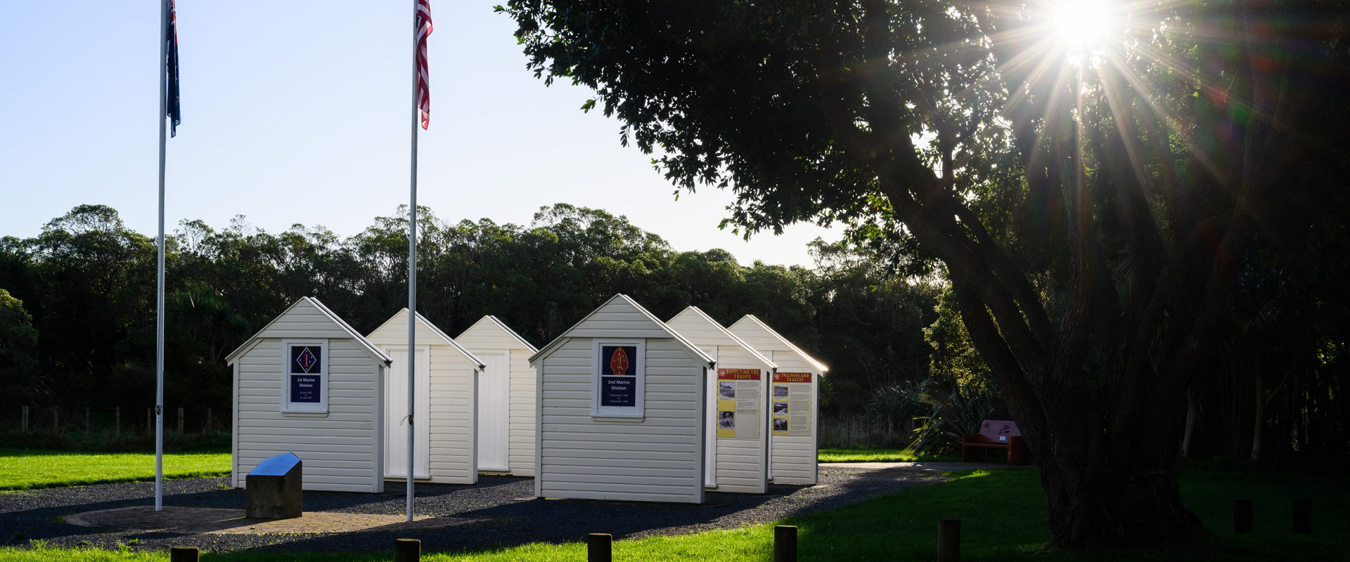 The U.S.Marines Memorial was built in 1992 for the 50th Anniversary of the US Armed Forces encampment in New Zealand during World War II. It now includes a restored Marines hut with an exhibition inside it, the Sailors Memorial commemorating ten US sailors who drowned off Whareroa Beach in 1943, and an exhibition explaining the joint Kiwi US effort - building the three camp sites.